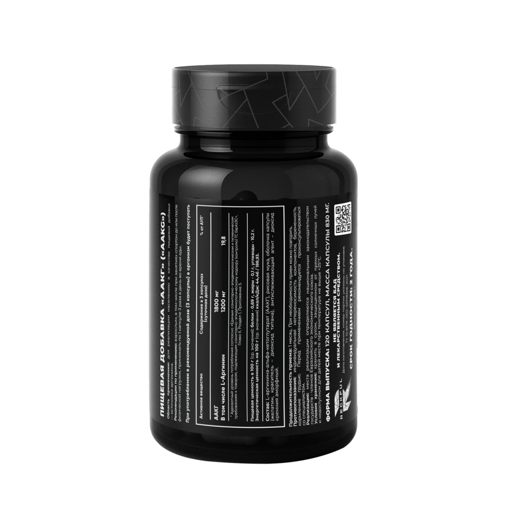 Состав: L-аргинина альфа-кетоглутарат (ААКГ), рисовая мука, оболочка капсулы (желатин, краситель – диоксид титана), антислеживающий агент – диоксид кремния аморфный.