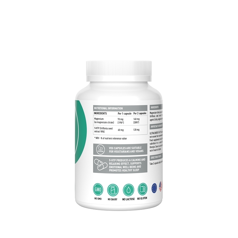5-НТP (5-гидрокситриптофан) от Ultrasupps произведен из семян гриффонии простолистной с добавлением цитрата магния, который усиливает действие и помогает достичь наибольшей эффективности от приема биодобавки. 5-HTP необходим для синтеза мелатонина и серотонина. Серотонин отвечает за общее самочувствие, психоэмоциональное состояние, способность организма выстраивать защиту от стрессов. Мелатонин помогает организму поддерживать здоровый режим сна и бодрствования.