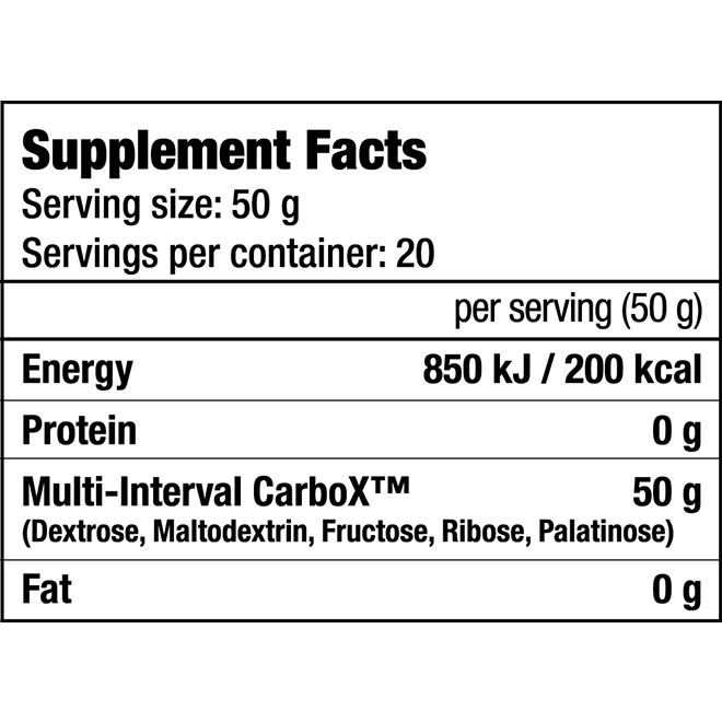 BT CarboX включает в свой состав 5 видов сложных углеводов с низкой, средней и высокой скоростью усвоения, которые отвечают за бесперебойное снабжение мышц питательными компонентами. В препарате содержатся легкоусвояемые компоненты с высокой молекулярной массой в запатентованной матрице Vitargo®. Такая форма углеводов отличается самой высокой скоростью расщепления и доставки в мышцы гликогена.